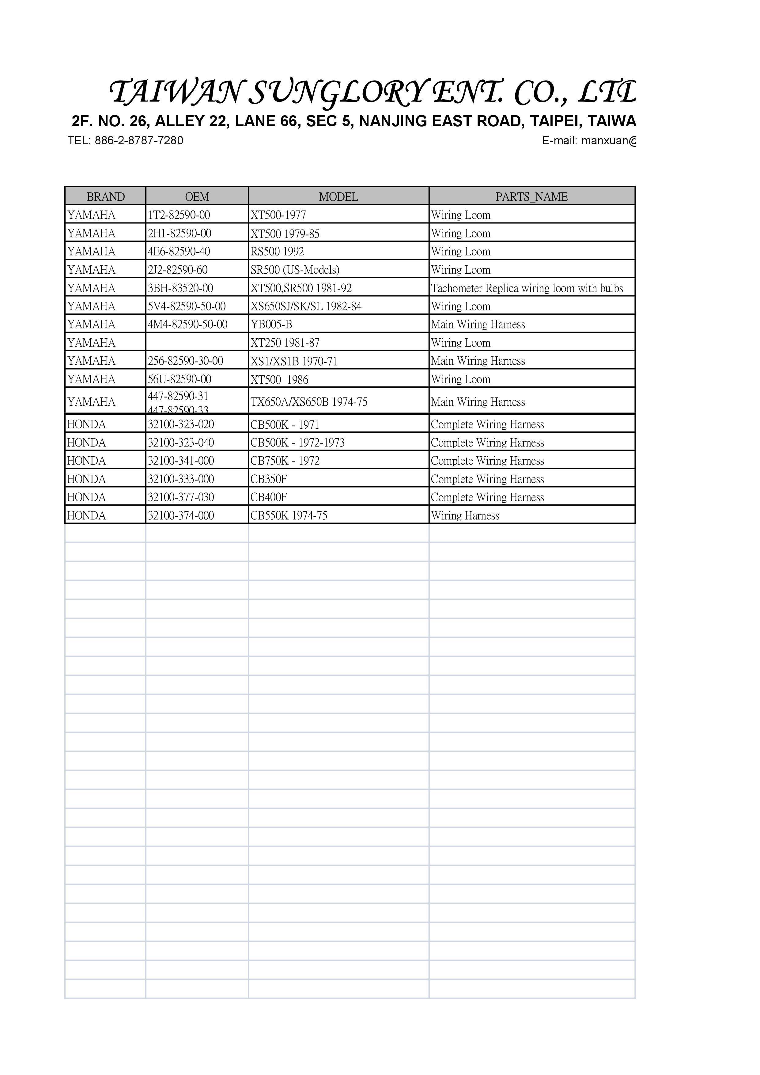 CODE :Show below PART NO. :Show below MODEL : Show below BRAND : Show below YEAR : Show below DESCRIOTION : WIRE HARNESS